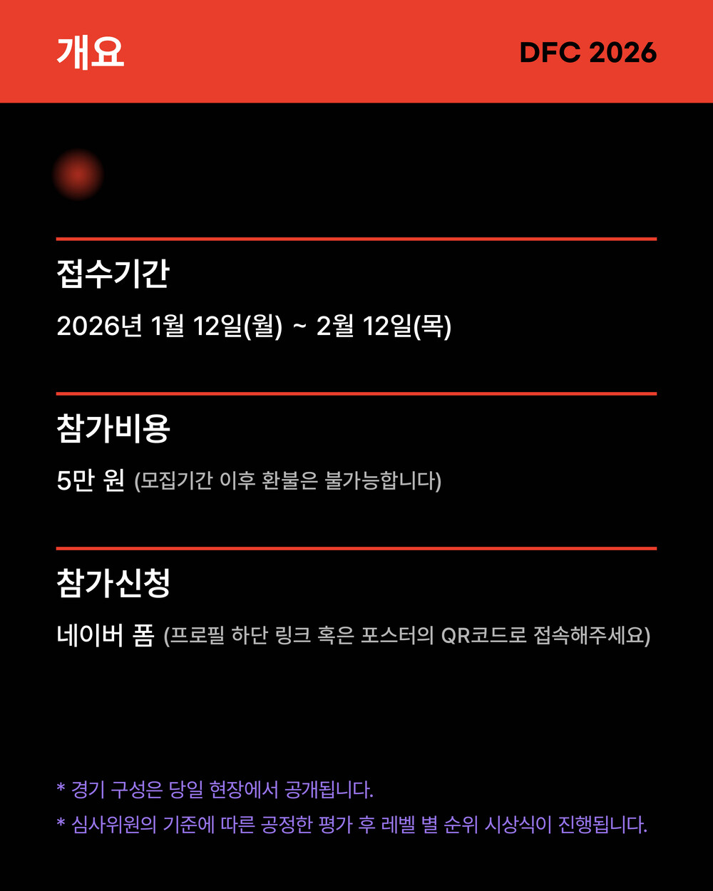 - 경기 내용, 소요 시간 및 심사 기준은 추후 공지 예정입니다.
